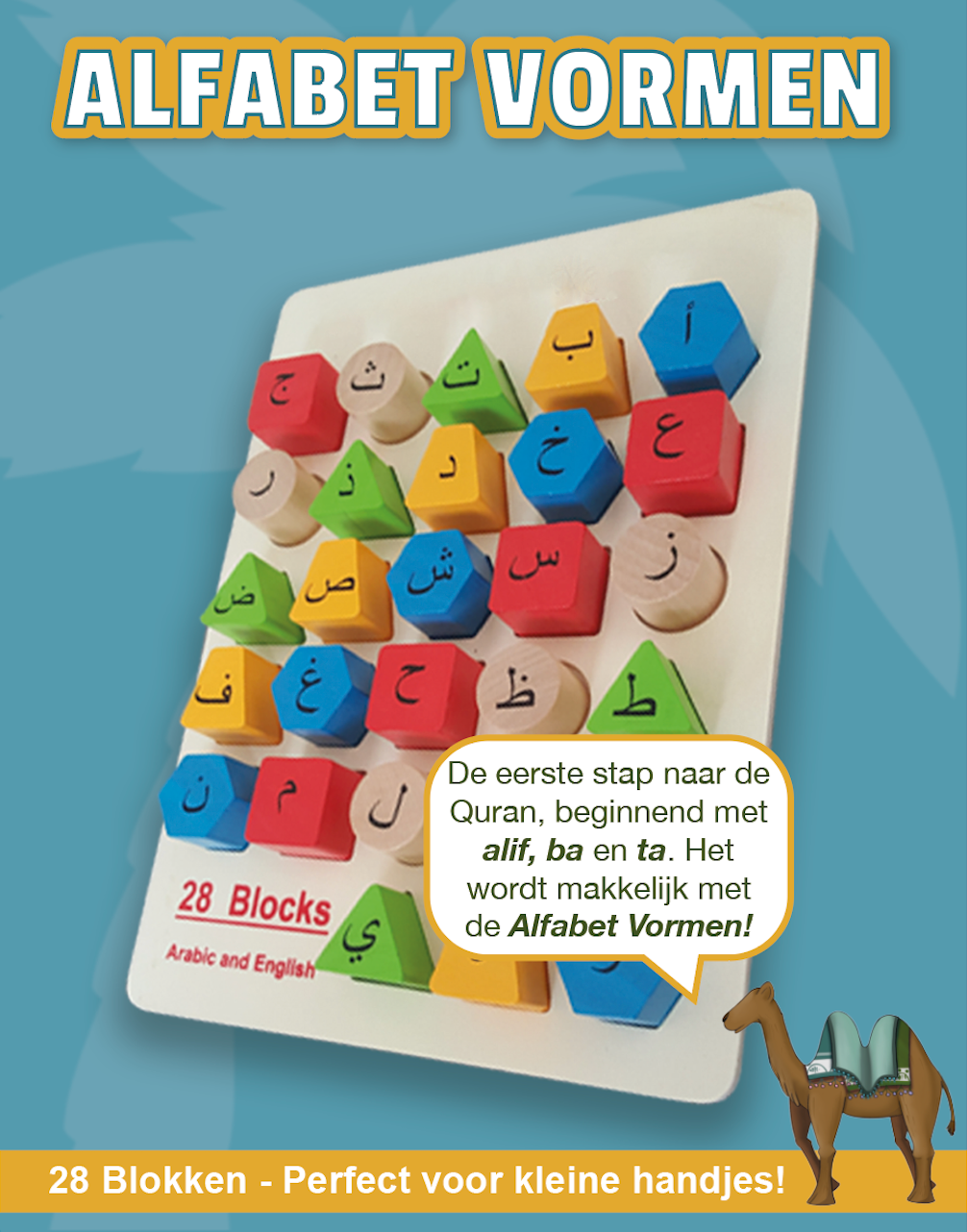 Leer Arabisch, leer Nederlands en leer de vormen! Gemaakt van hoogwaardige materialen, gaat dit item jaren mee in sha Allah! Deze blokken zijn ergonomisch ontworpen en kleurrijk gerangschikt zodat ze meteen in het oog springen van je kind.